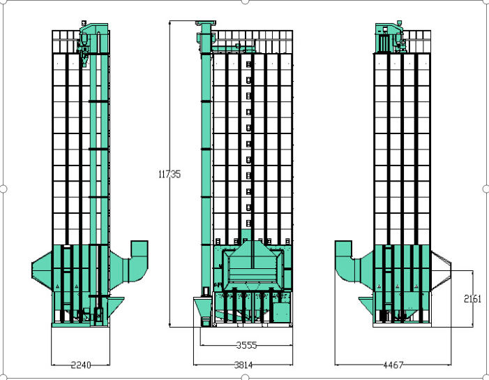2. 強制分散裝置及多支排糧輪定量下料循環(huán),薄層大風(fēng)量,谷物干燥均勻,干燥效率高。
